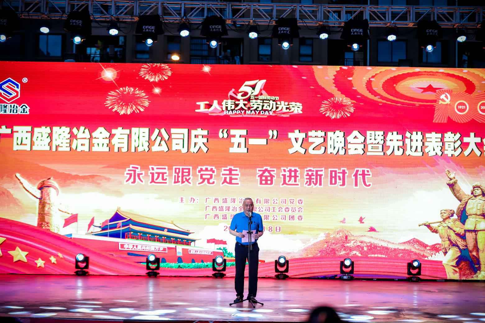 5月8日晚,BANDAO.COM盛隆佳园文化广场歌声嘹亮,掌声如潮。由BANDAO.COM党委、工会委员会、团委联合主办的“永远跟党走,奋进新时代——庆‘五一’文艺晚会暨先进表彰大会”在这里隆重举行。公司常务副总经理陈亮出席晚会并致辞,副总经理兼安环总监吕华民、副总经理兼技术中心主任刘光穆、总工程师兼规划发展部经理梁新亮、总经理助理兼广西广盛高强耐磨新材料有限公司总经理王文凯、党委常务副书记游元喜、工会主席兼总经理办公室主任刘明奇及各厂部主要领导出席。